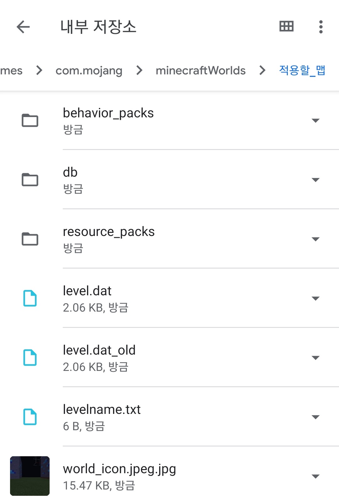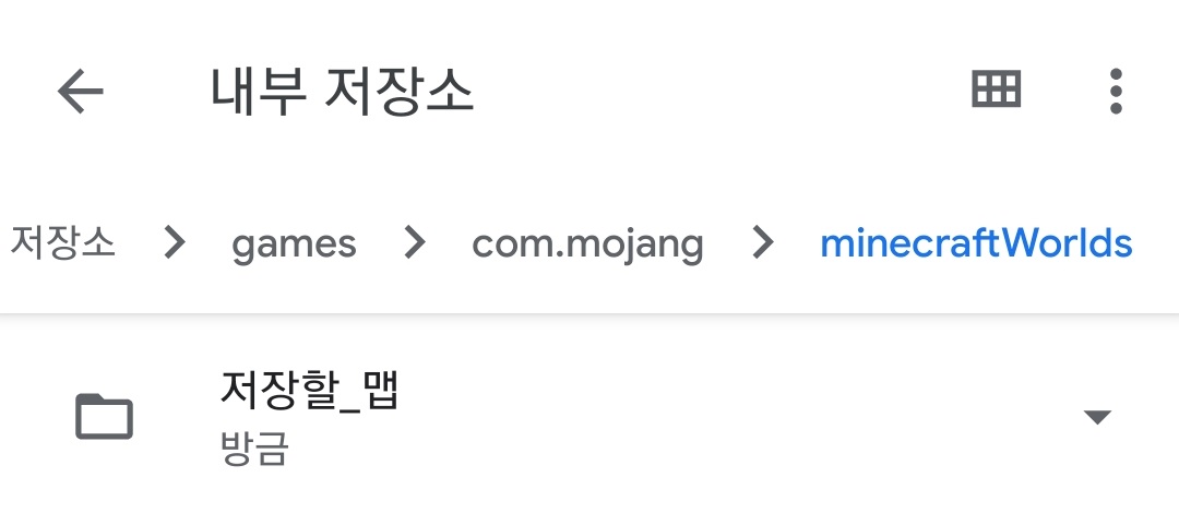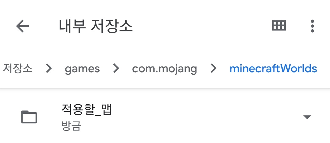 맵 폴더를 맵 저장 경로로 복사해줍니다. (맵 저장 기본 경로 내부 저장소/Android/data/com.mojang.minecraftpe/files/games/com.mojang/minecraftWorlds)